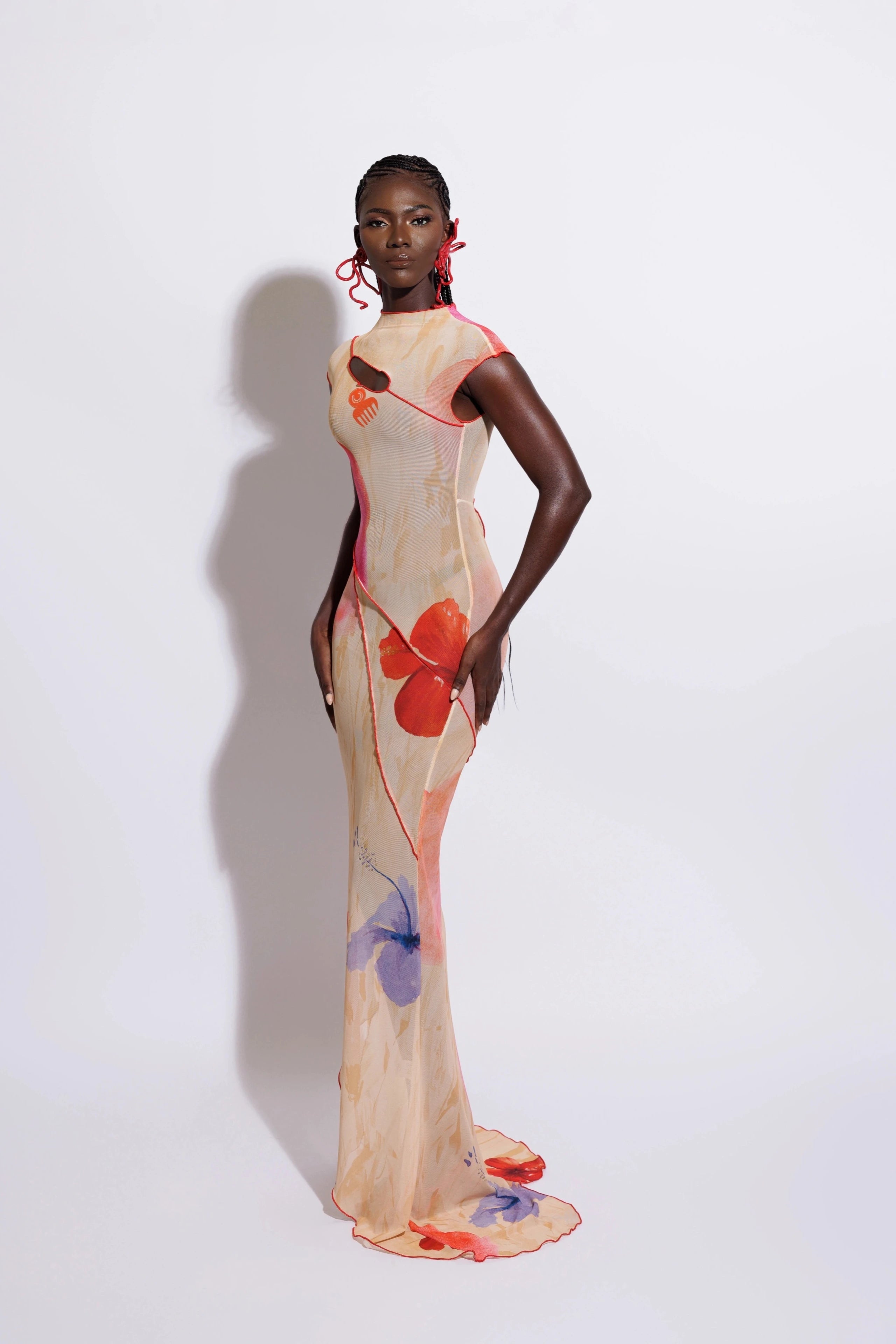 One of a kind & impossible to forget. SISI embodies meticulous craftsmanship, featuring our hand-painted ILÉ print in our signature silhouette. Decorated with intricate contrast thread detailing and body-skimming panels, its dramatic lines and iconic petal hemline embody the courage to stand apart.